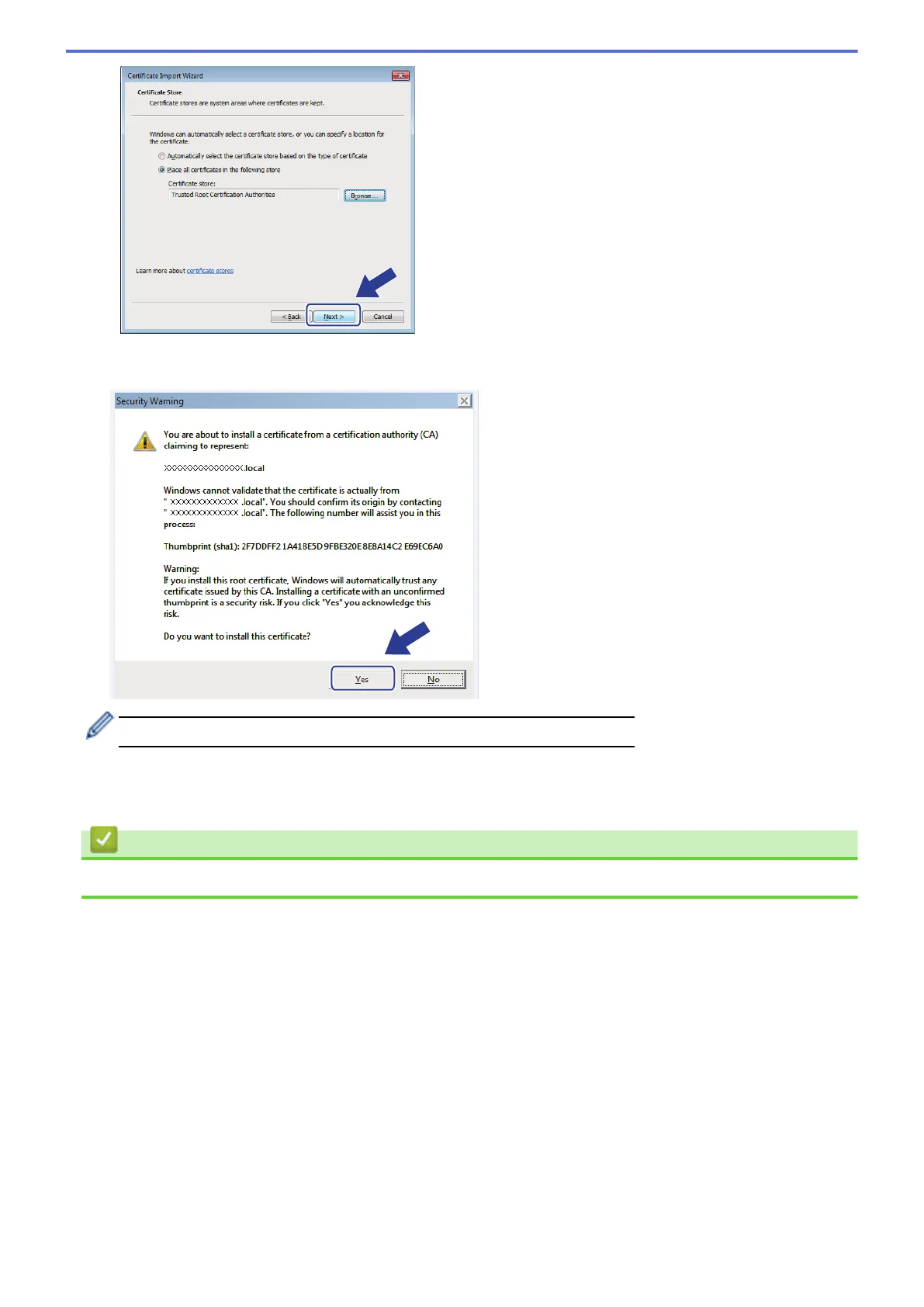 12. Click Yes, if the fingerprint (thumbprint) is correct.