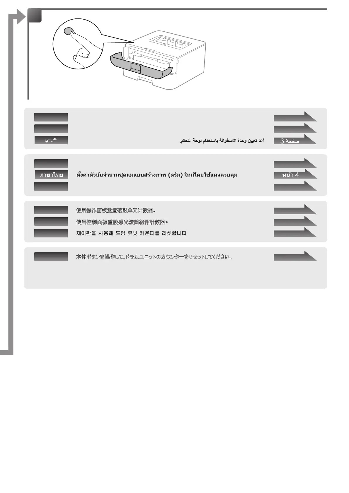 本体 ボタ ン を 操作して、ドラム ユ ニッ ト のカウンター をリセ ットしてく だ さ い。