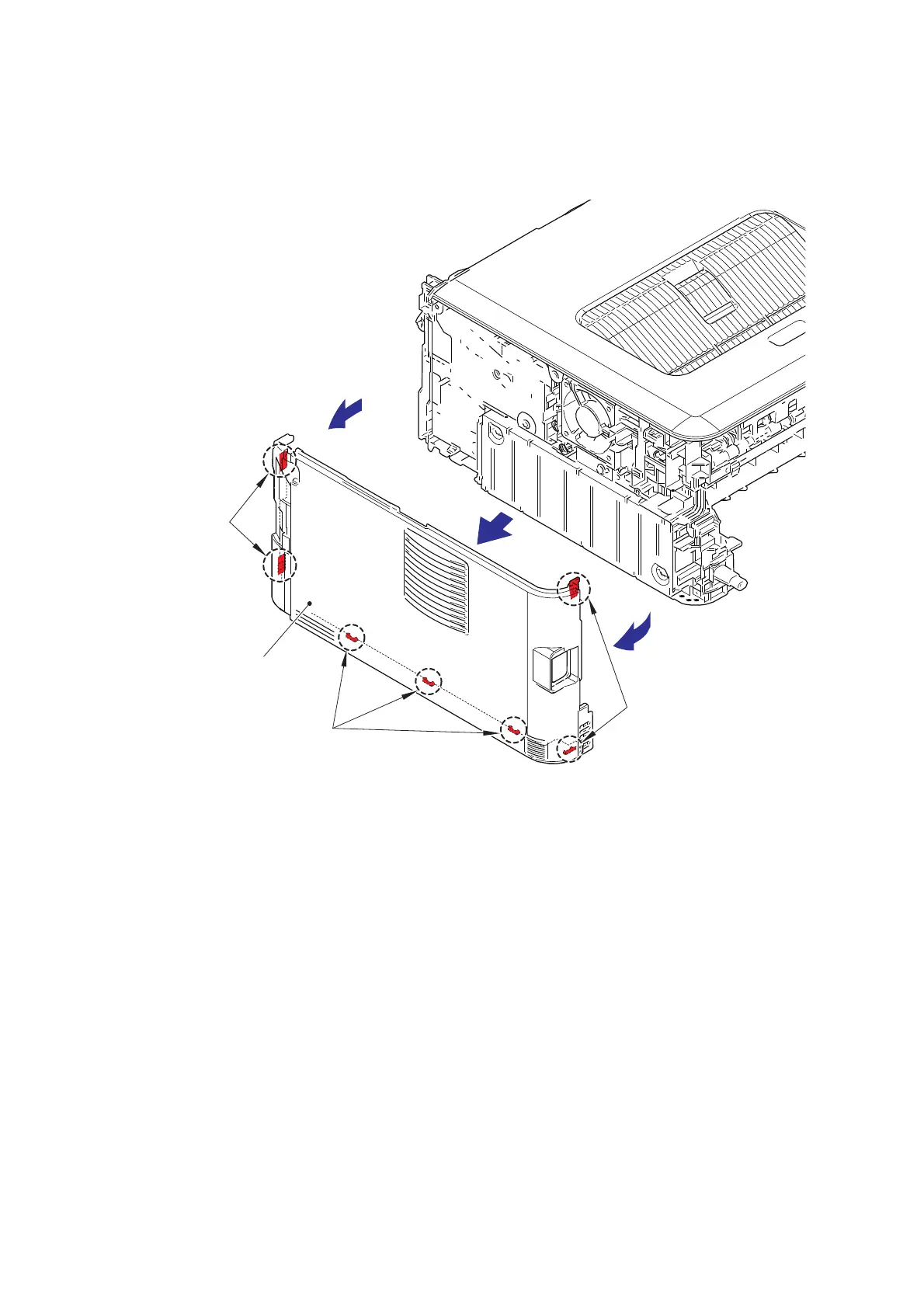 (1) Release the each hook on the side cover R in order of the arrow A to C, and remove the