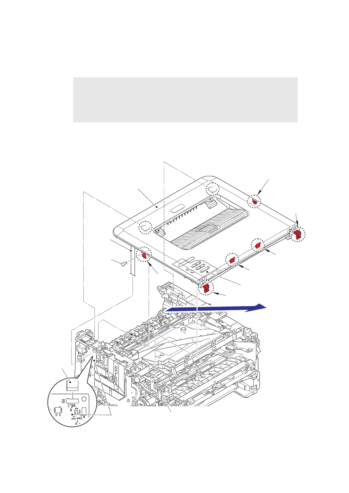 (4) Release the hooks on the top cover ASSY in order of the hook A to F, and remove the