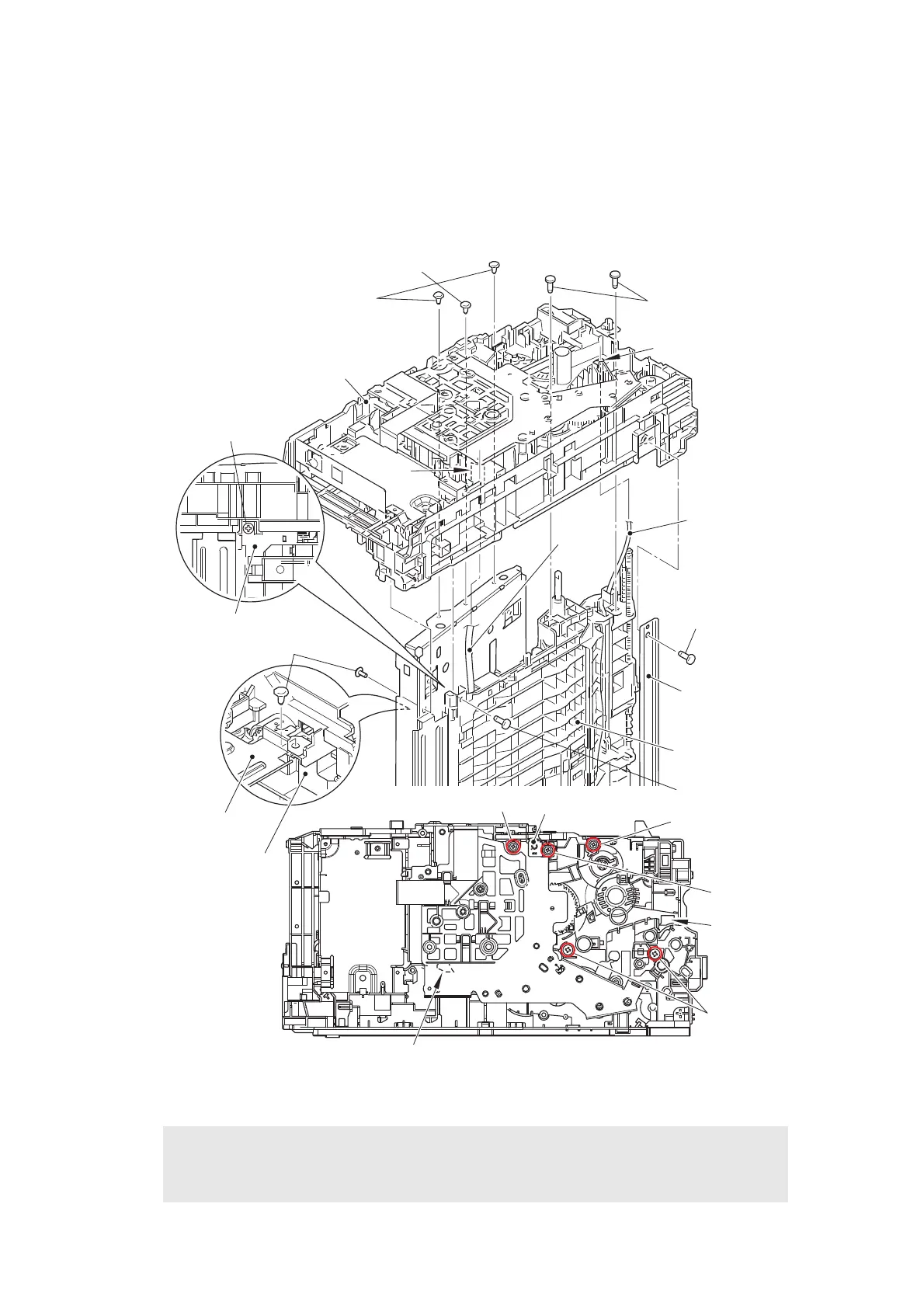 • When assembling the main frame L ASSY, make sure that the chute ground plate is