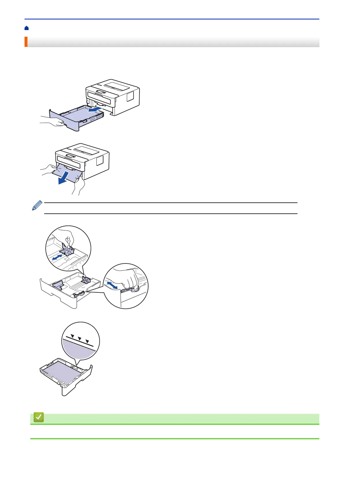 3. Fan the stack of paper to prevent further jams, and slide the paper guides to fit the paper size.