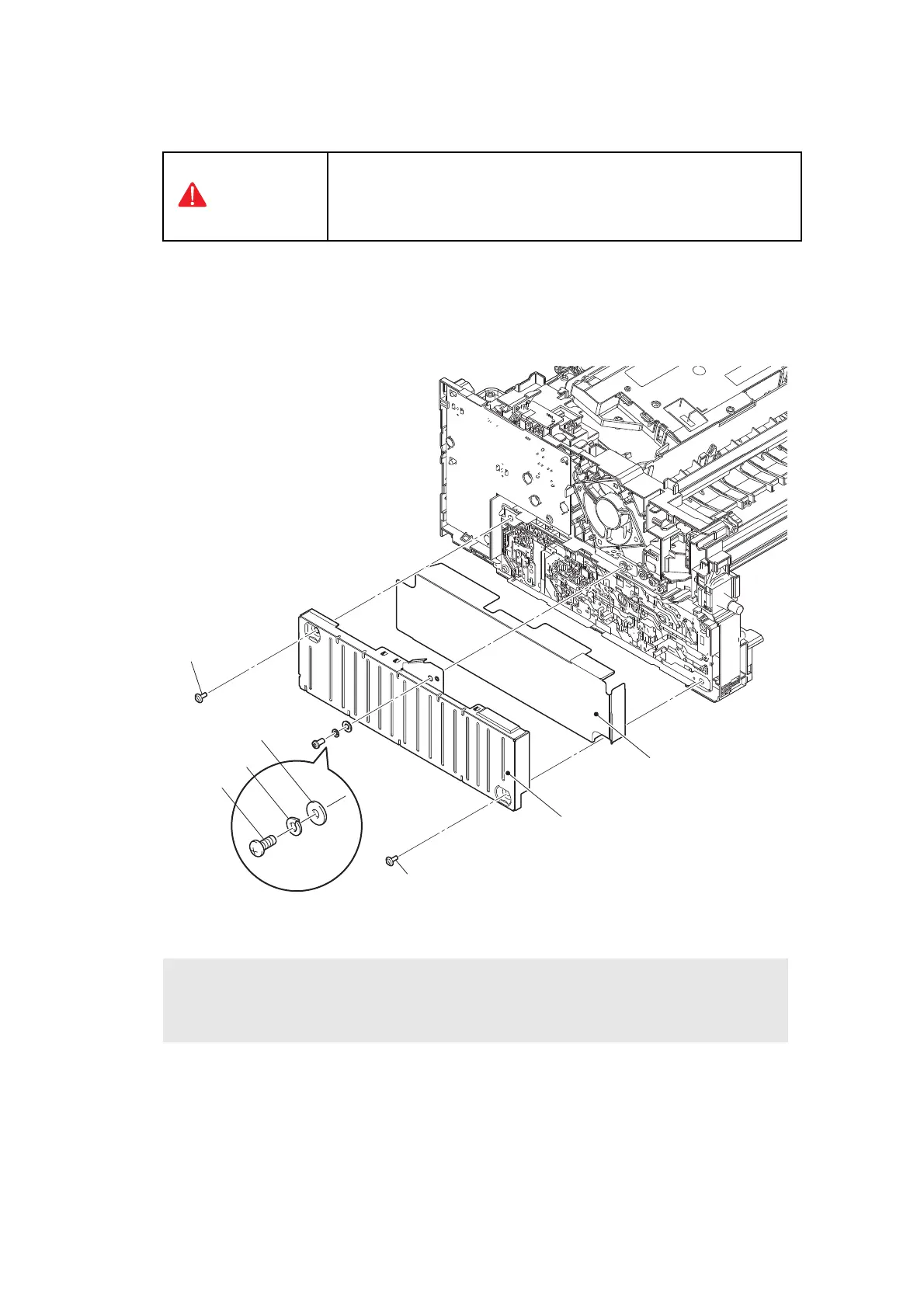 (1) Remove the two Screw cup M3x8 (black) screws, the Screw pan M4x8 screw, the Washer