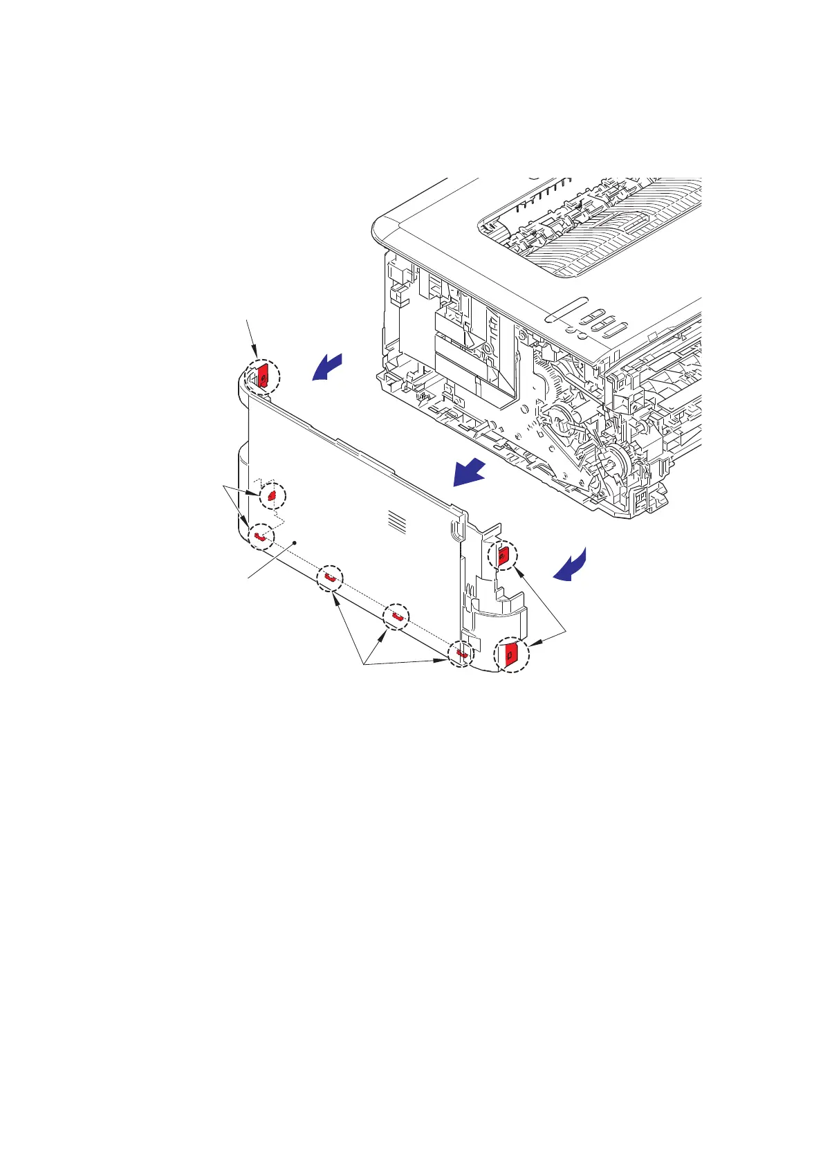 (1) Release the each hook on the side cover L in order of the arrow A to C, and remove the