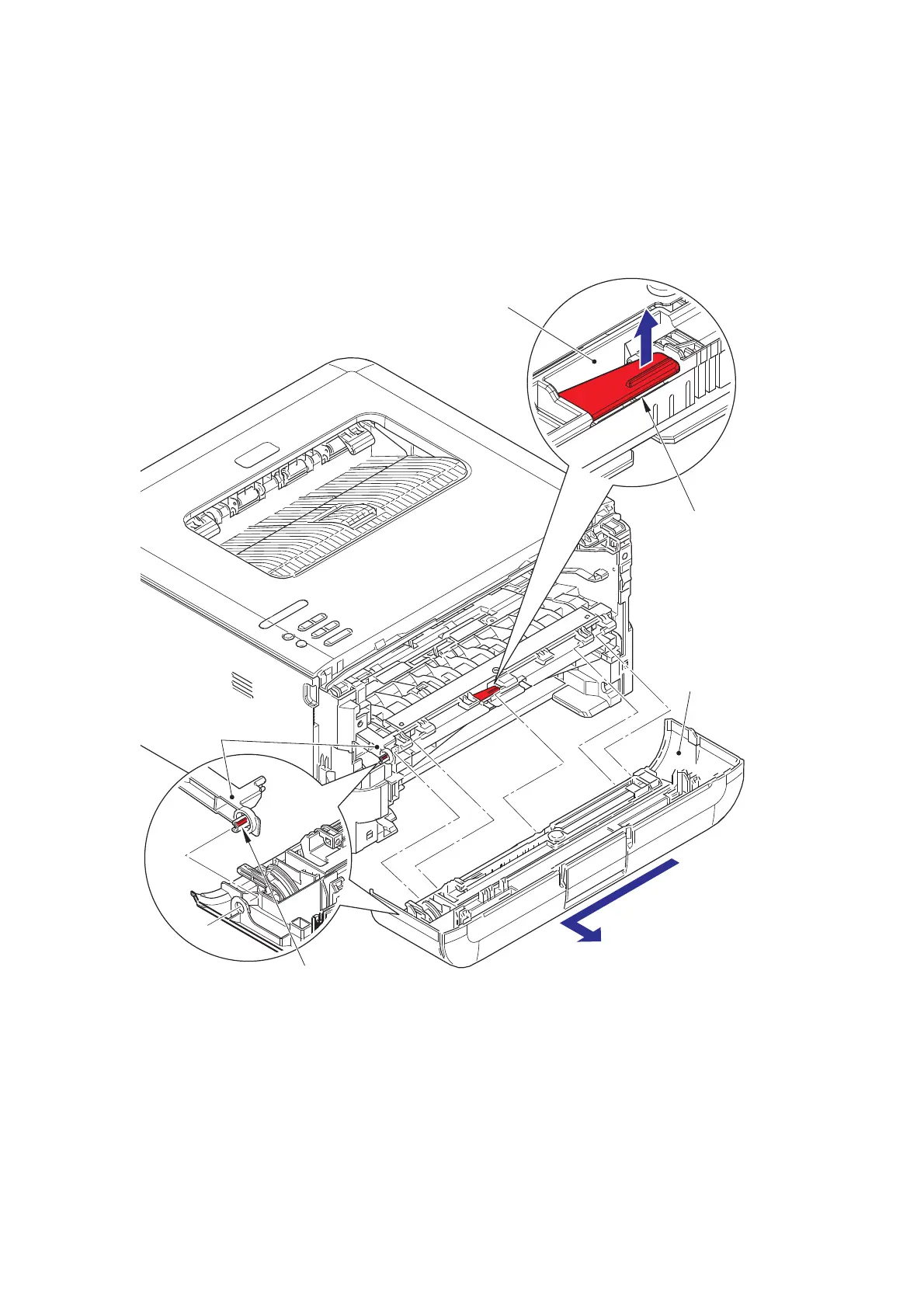 (3) Lift the rib on the front chute ASSY, and slide the front cover ASSY in the direction of the