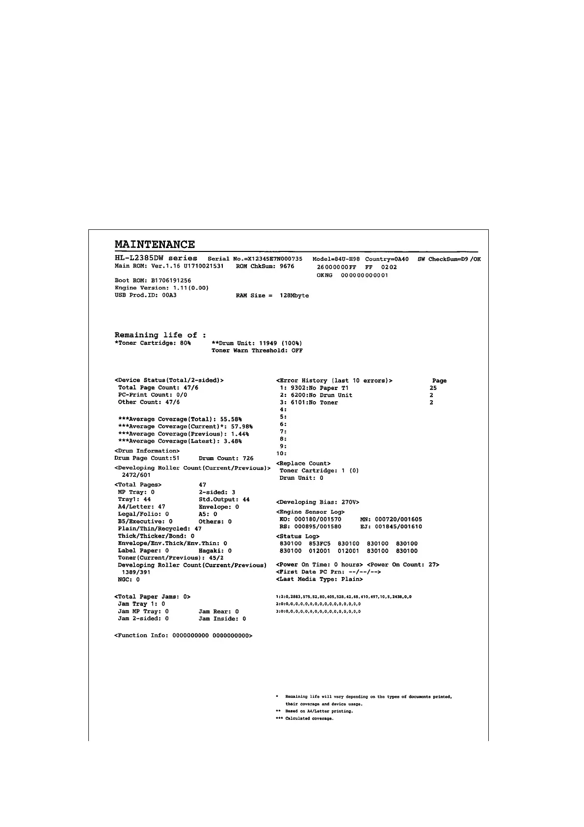 Brother HL-L2372DN - Print Maintenance Information (Function Code 77)