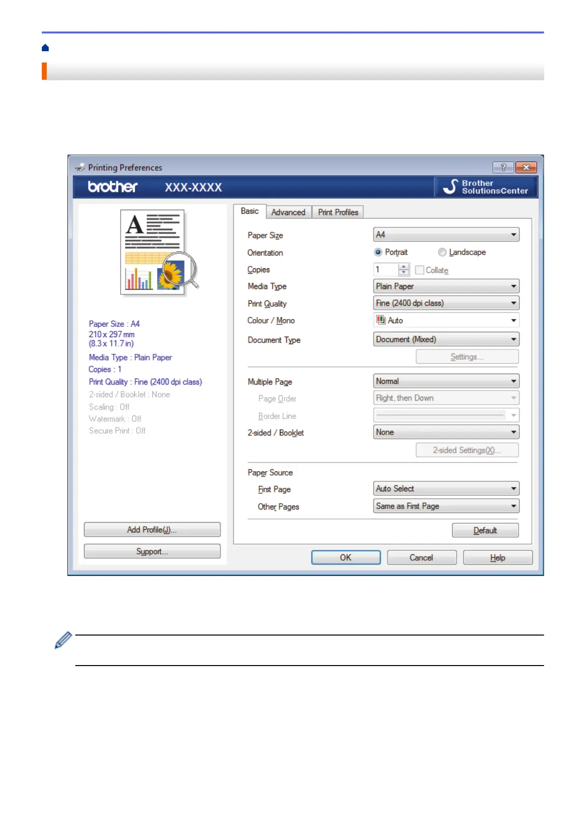 2. Select Brother XXX-XXXX (where XXXX is the name of your model), and then click the printing properties or