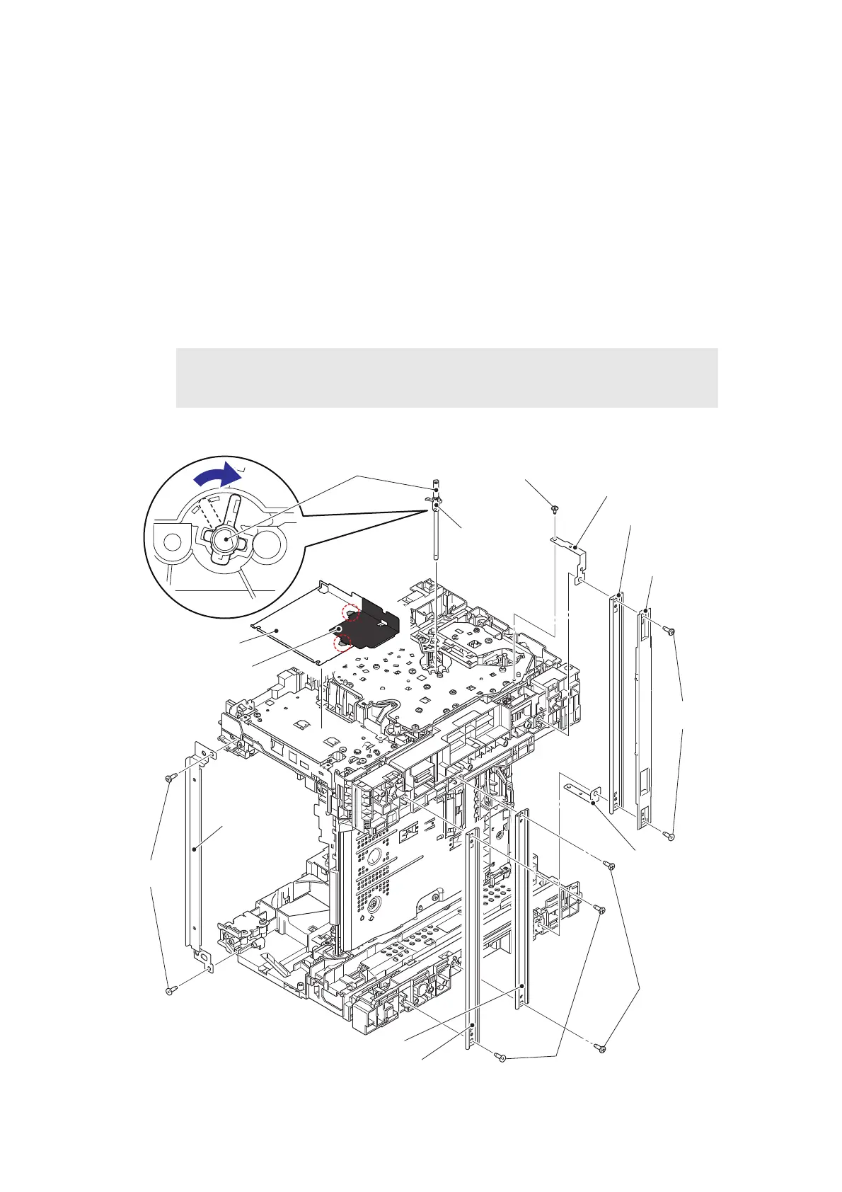 (4) Remove the two taptite bind B M4x12 screws, and remove the top bar rear. (Touch panel