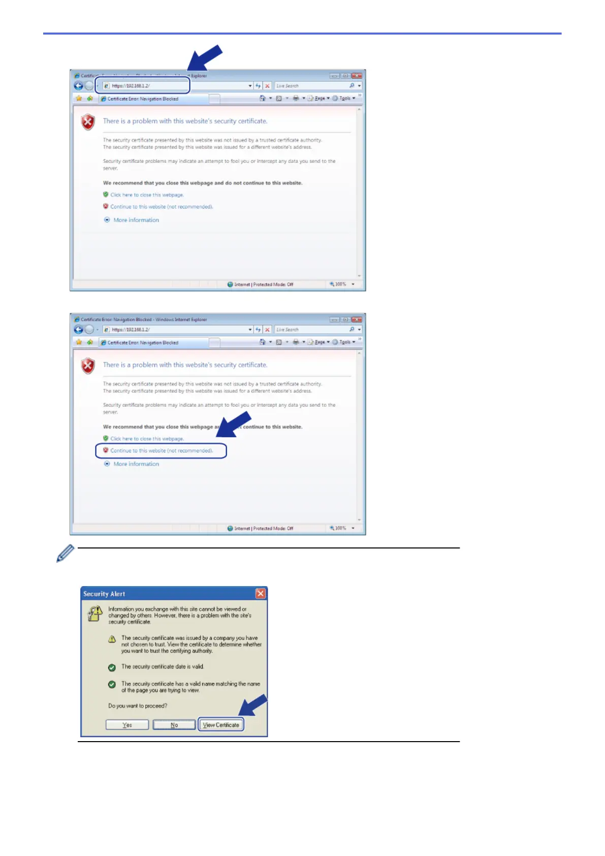 When the following dialog box appears, click View Certificate, and then go to step 6.