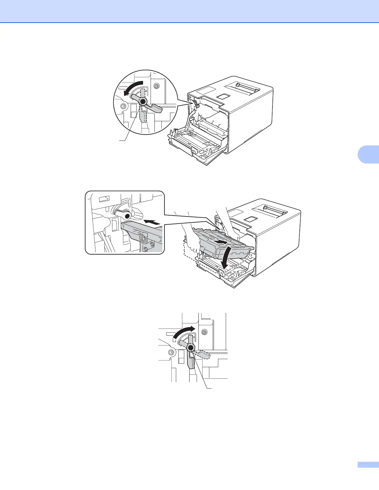 i Gently slide the drum unit into the machine until it stops at the blue lock lever.
