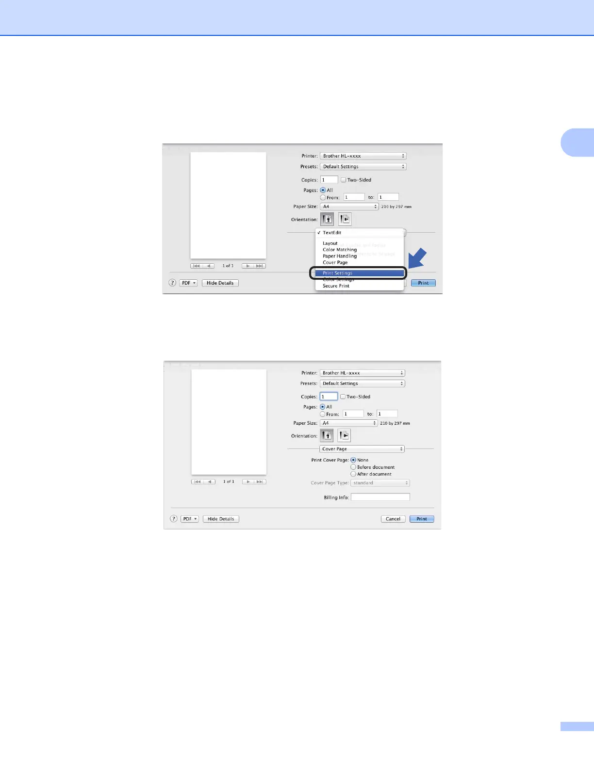 To control special printing features, choose Print Settings from the Print dialog box. For more information