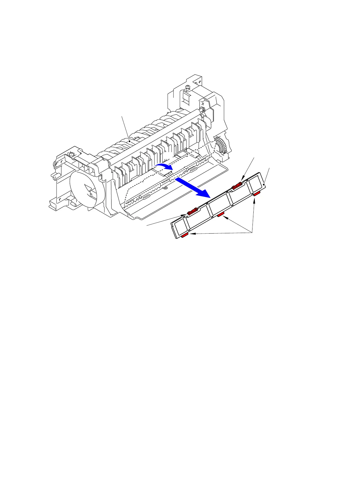 (1) Release the five Hooks and remove the Toner filter ASSY from the Paper eject ASSY.