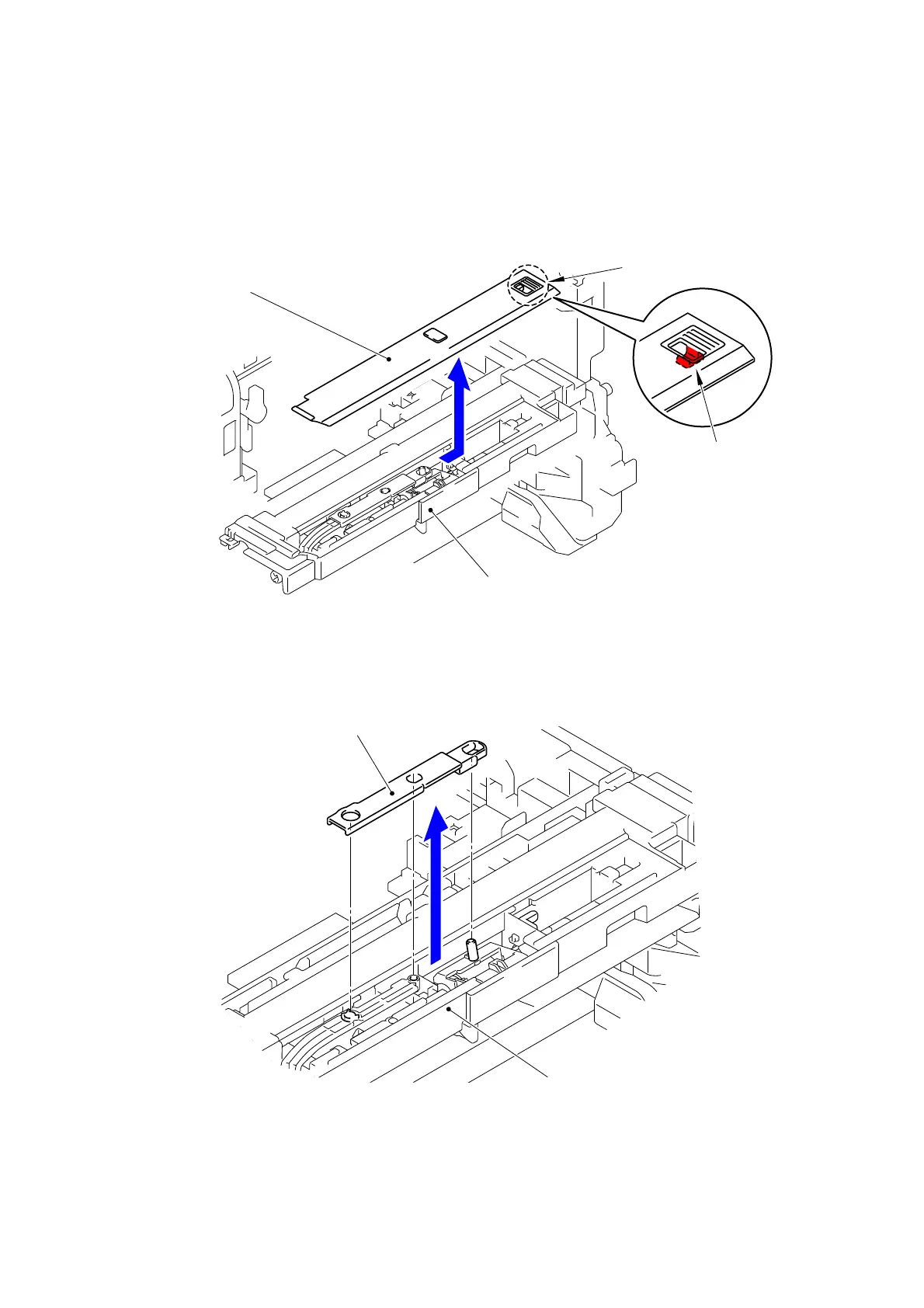(1) Press “A” to release the Hook and remove the MP upper frame cover from the MP upper
