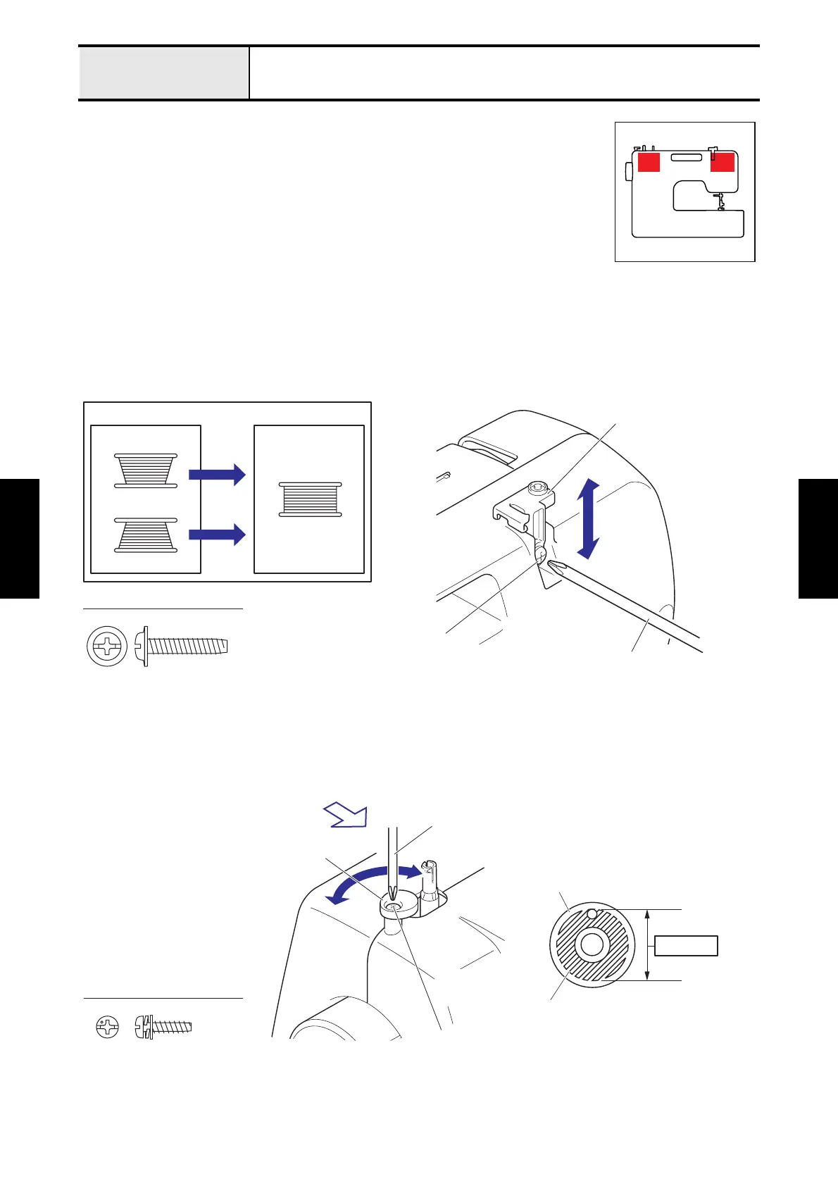 4. Move the thread guide assy up and down to adjust the bobbin winding so that the thread is wound parallel to