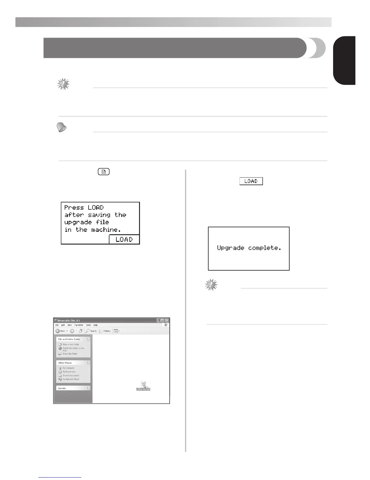 z The embroidery pattern which is saved in the sewing machine will not be deleted if you upgrade the