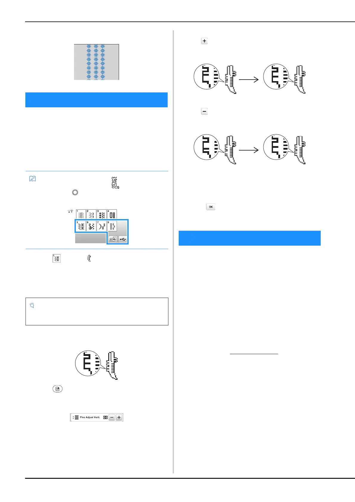 Press , and then adjust the stitch pattern with the