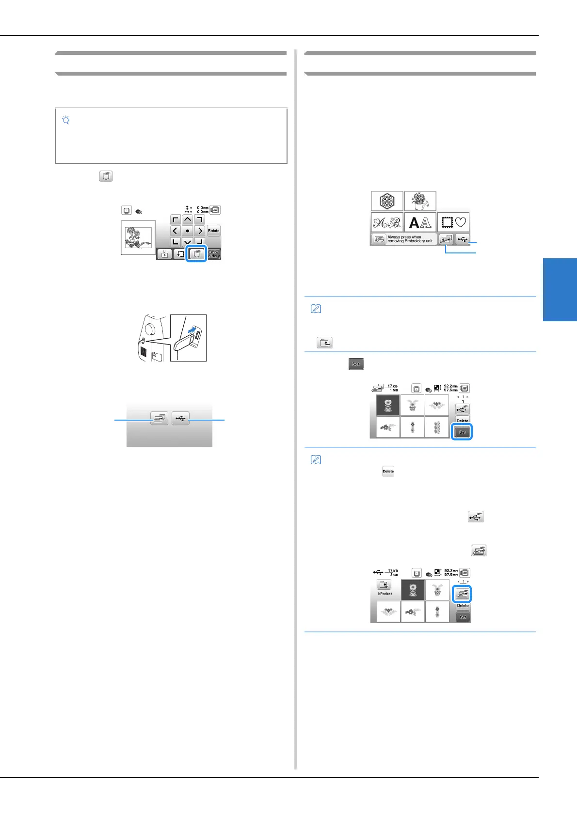 • When retrieving the embroidery patterns from the USB