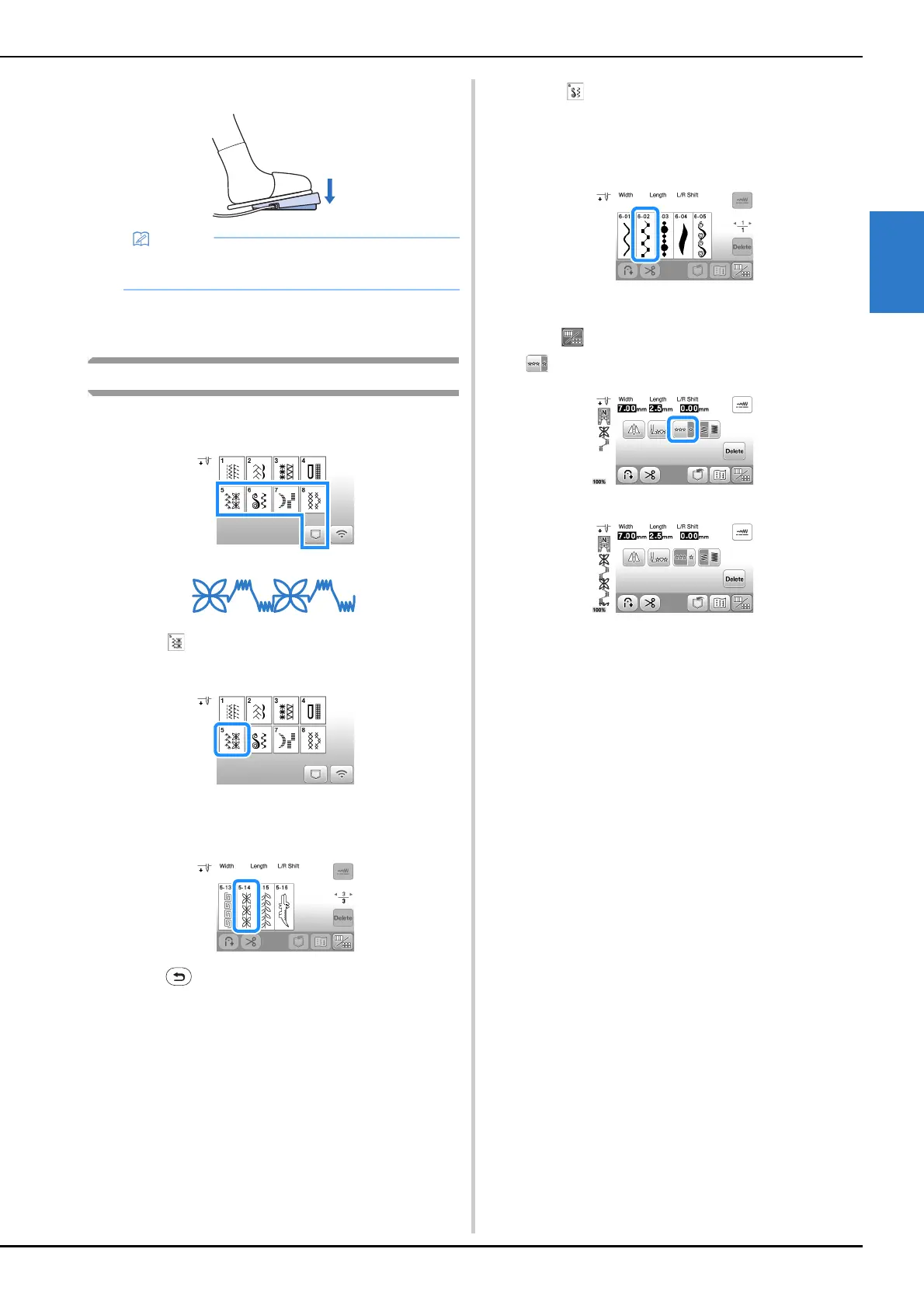 The display returns to the stitch selection screen.