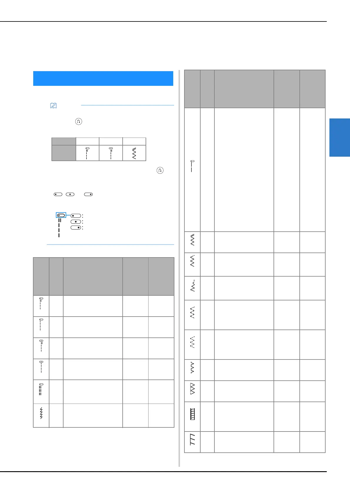 No. Stitch name/Applications