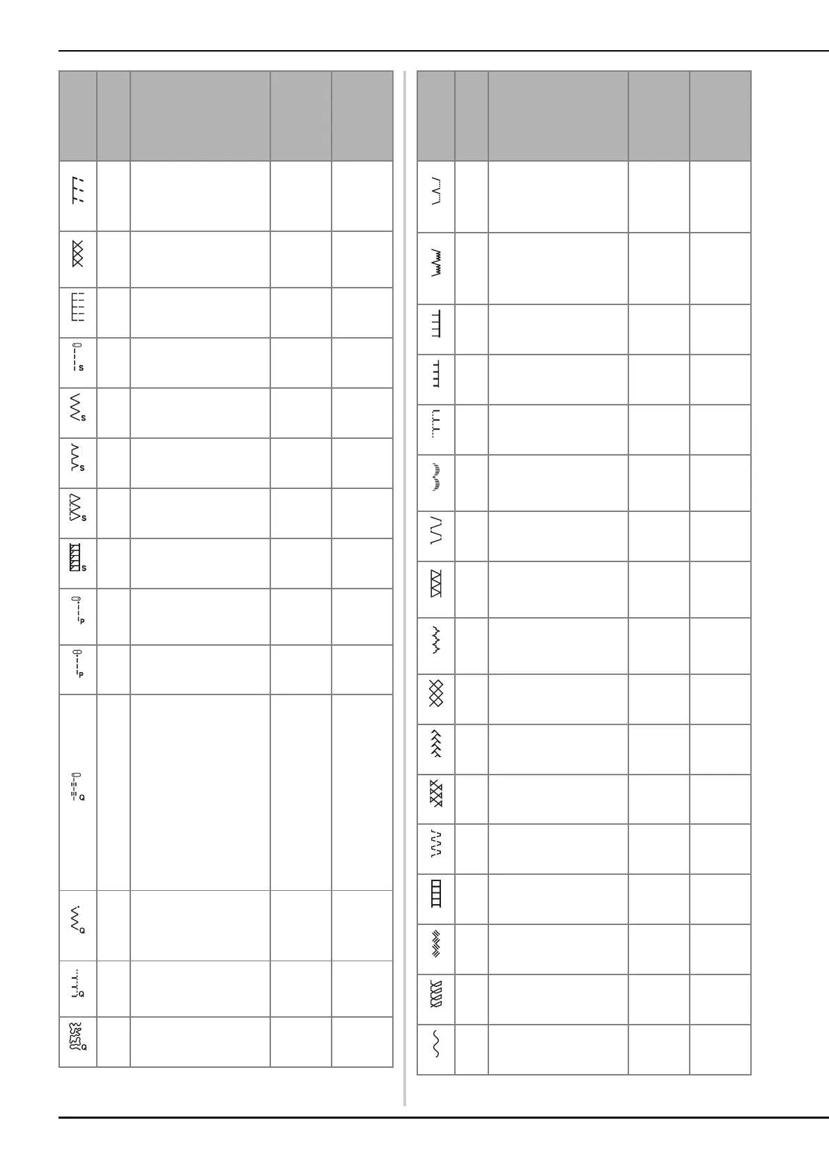No. Stitch name/Applications