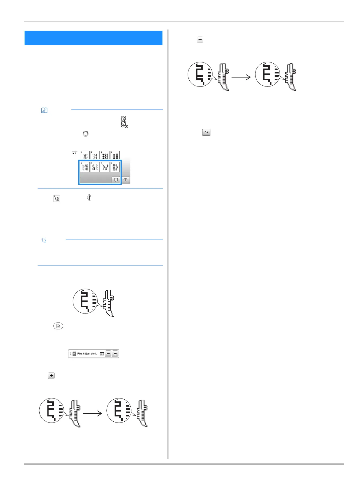 Touch , and then adjust the stitch pattern with the