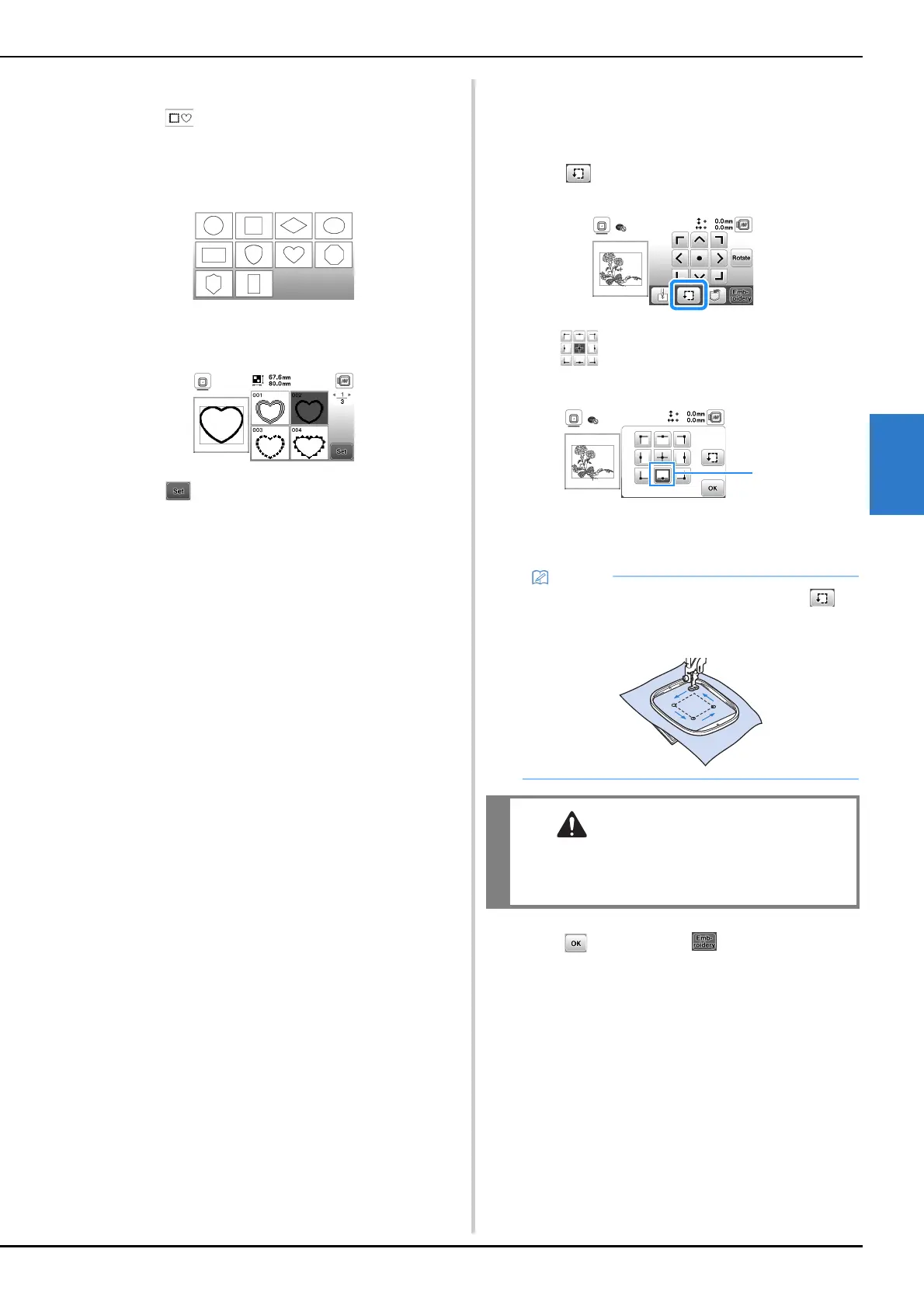 • To see the entire embroidering area, touch .