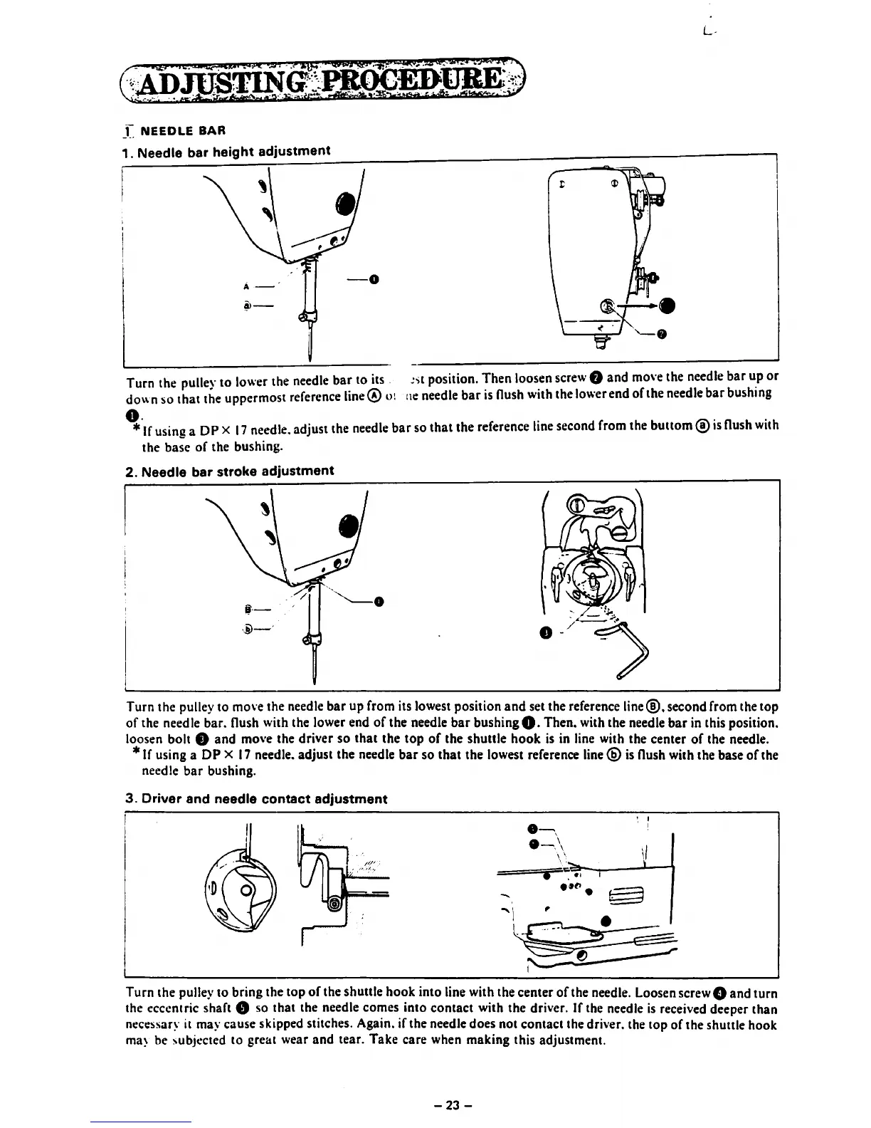 Brother LK3-B430 - ADJUSTING PROCEDURE; NEEDLE BAR