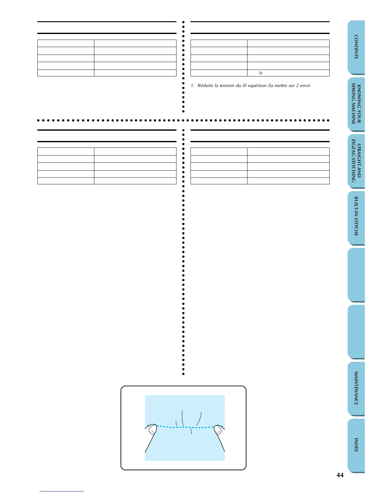 1. Réduire la tension du fil supérieur (la mettre sur 2 environ) de fa-