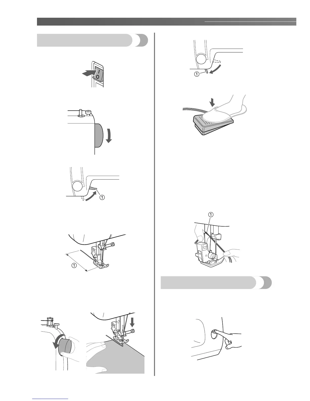 fabric with your left hand, turn the handwheel