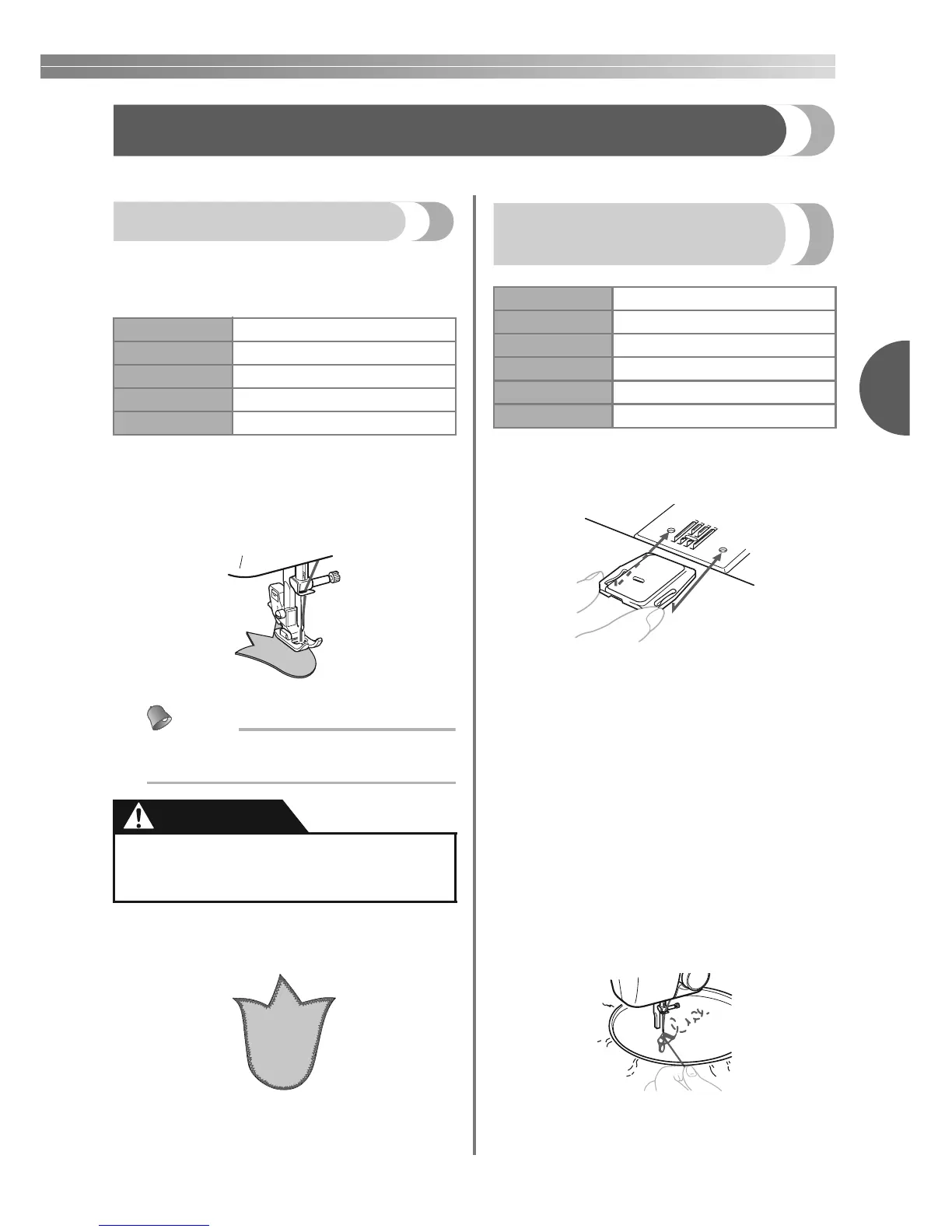● Be careful that the needle does not hit a pin