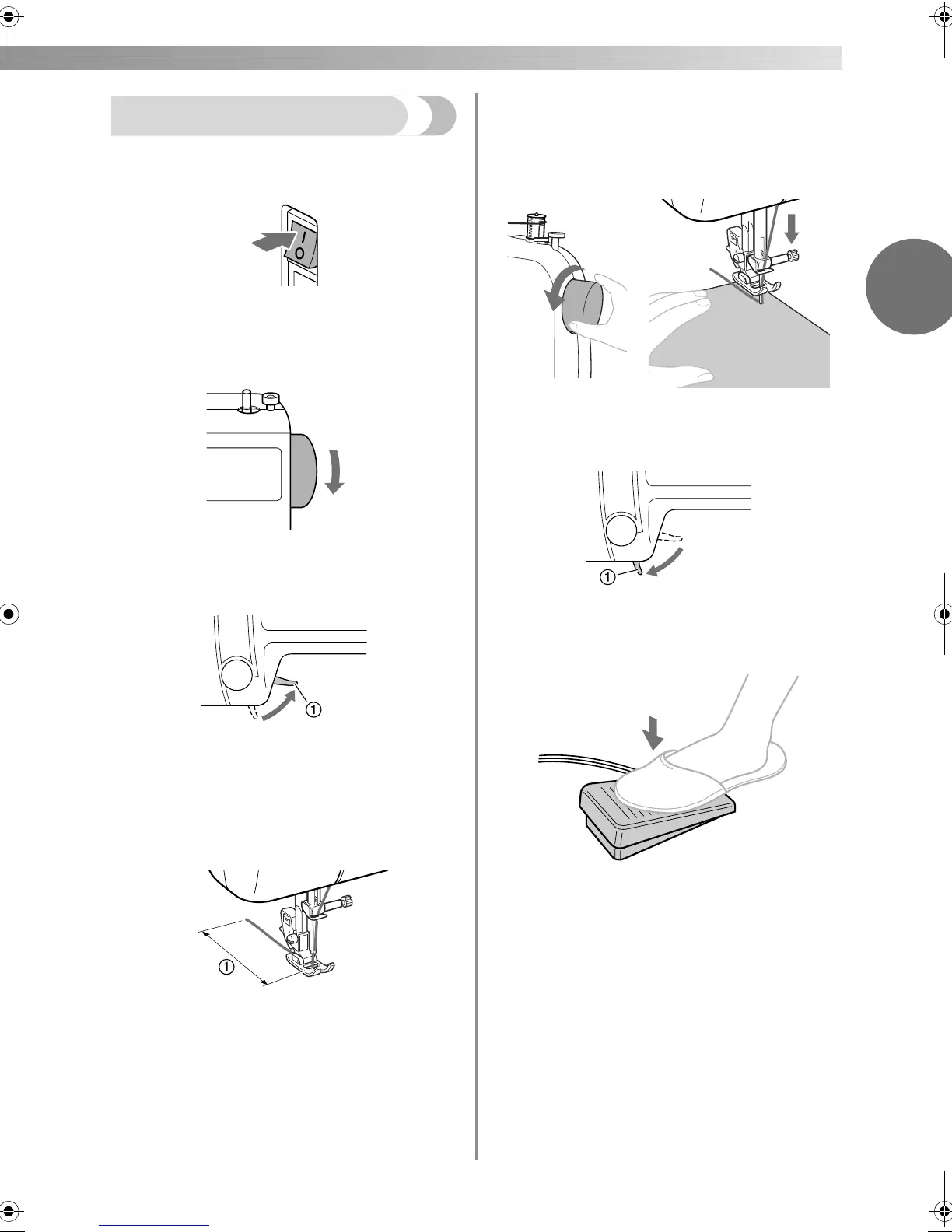 fabric with your left hand, turn the handwheel