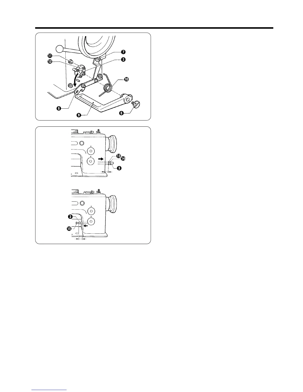 10.Pull the reverse stitching lever shaft e so that it projects 5