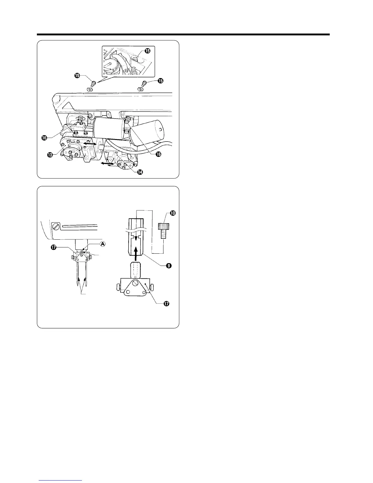 * A ce moment, insérer la saillie du pince-aiguilles !7 dans l'encoche A de la barre à aiguille.
