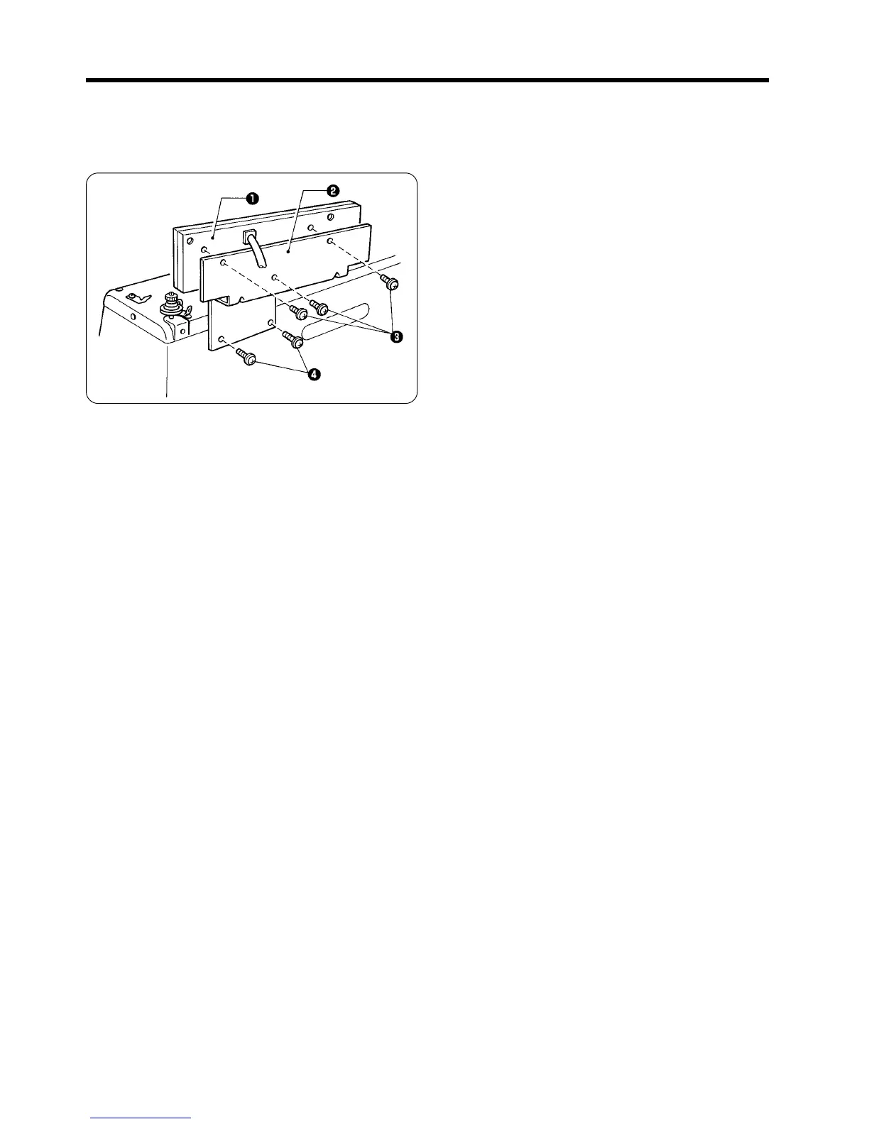 1. Bringen Sie die Drucklufteinheit q mit den beiden Holzschrauben w an der Nähtischunterseite an. (Dazu wird auf die Zeichnung