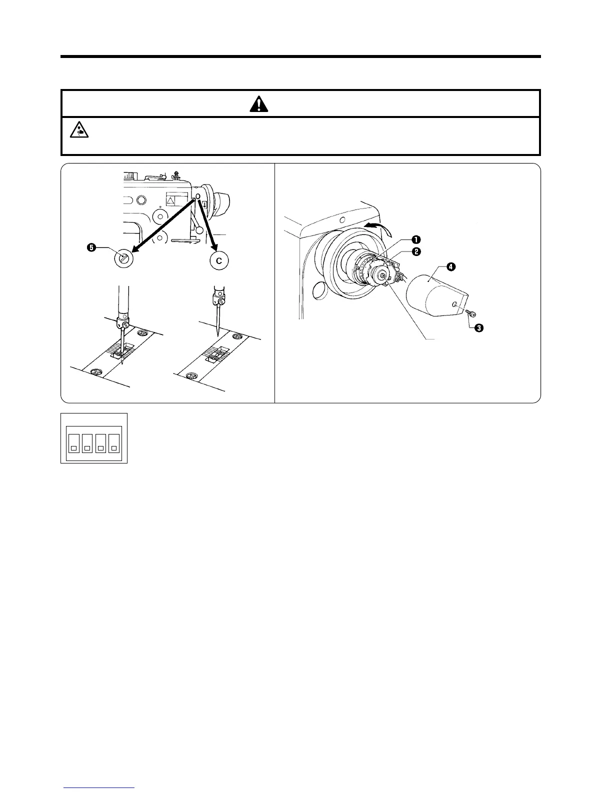 2. Wenn die Scheibe w für die untere Nadelstopposition in die gleiche Richtung wie die Riemenscheibe der Nähmaschine gedreht