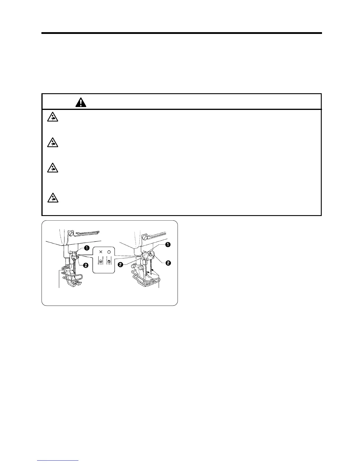 Turn off the power switch before installing the needle, otherwise the machine may operate if the treadle is pressed
