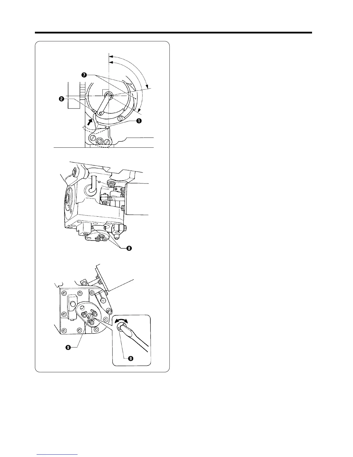 Adjust so that the rotary hook tip u is at the angle indicated