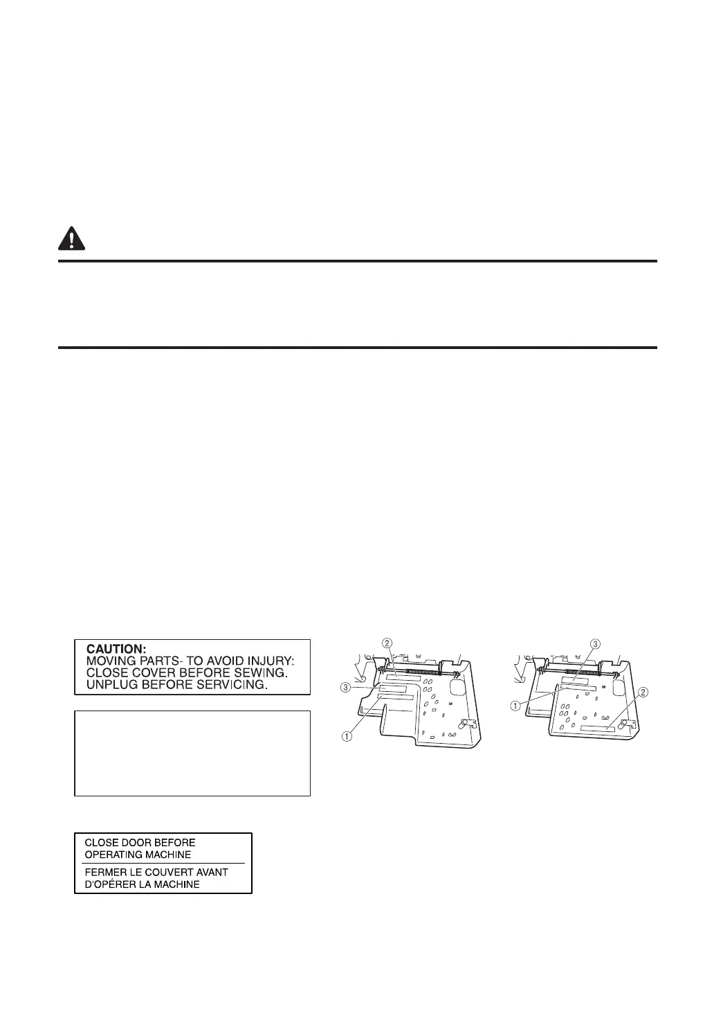 The following warning labels are on the machine.