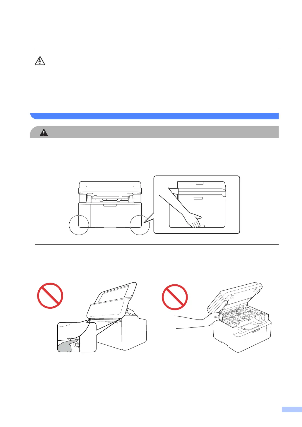 To prevent injuries, be careful not to put your fingers in the areas shown in the illustrations.