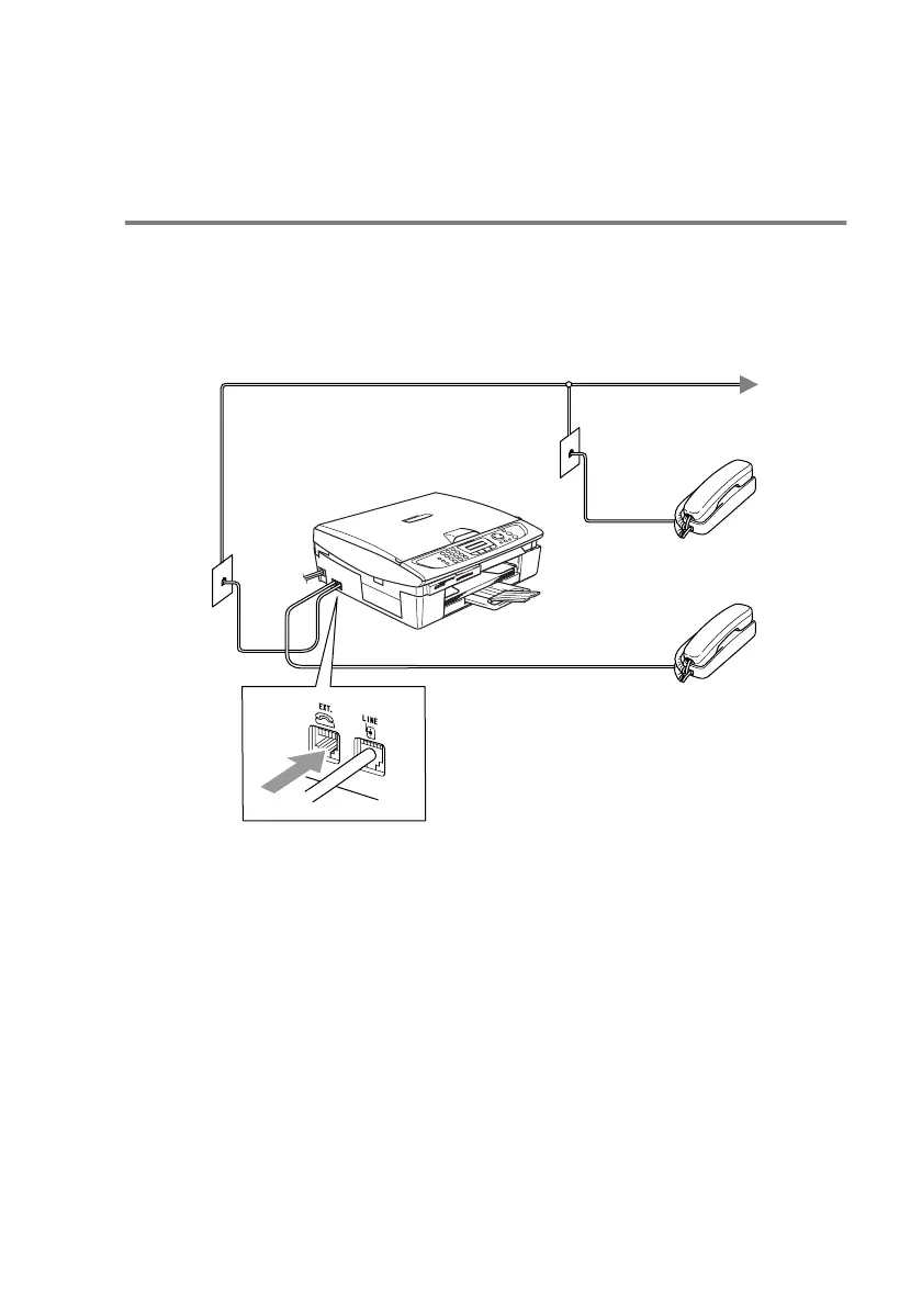 Connect the telephone line cord to the jack labeled EXT. in the left of
