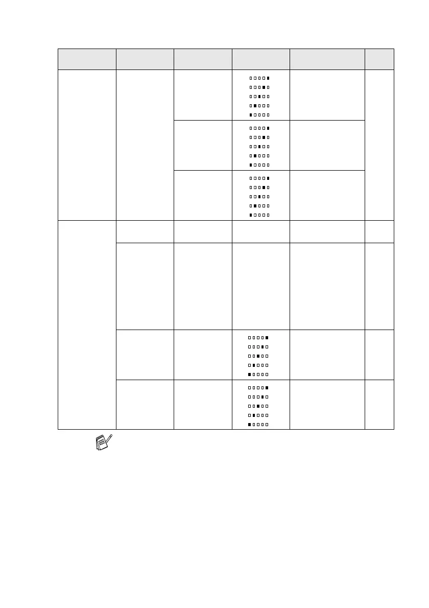The factory settings are shown in Bold.