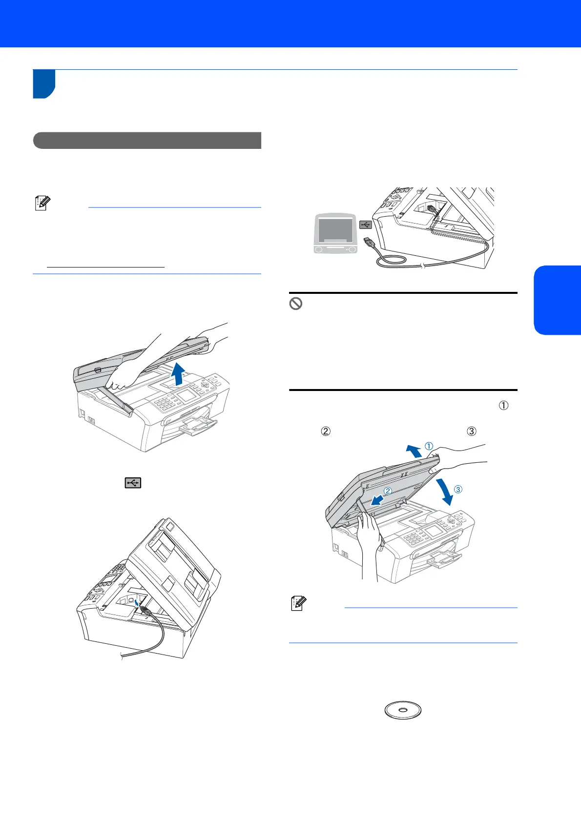 • DO NOT connect the machine to a USB port on
