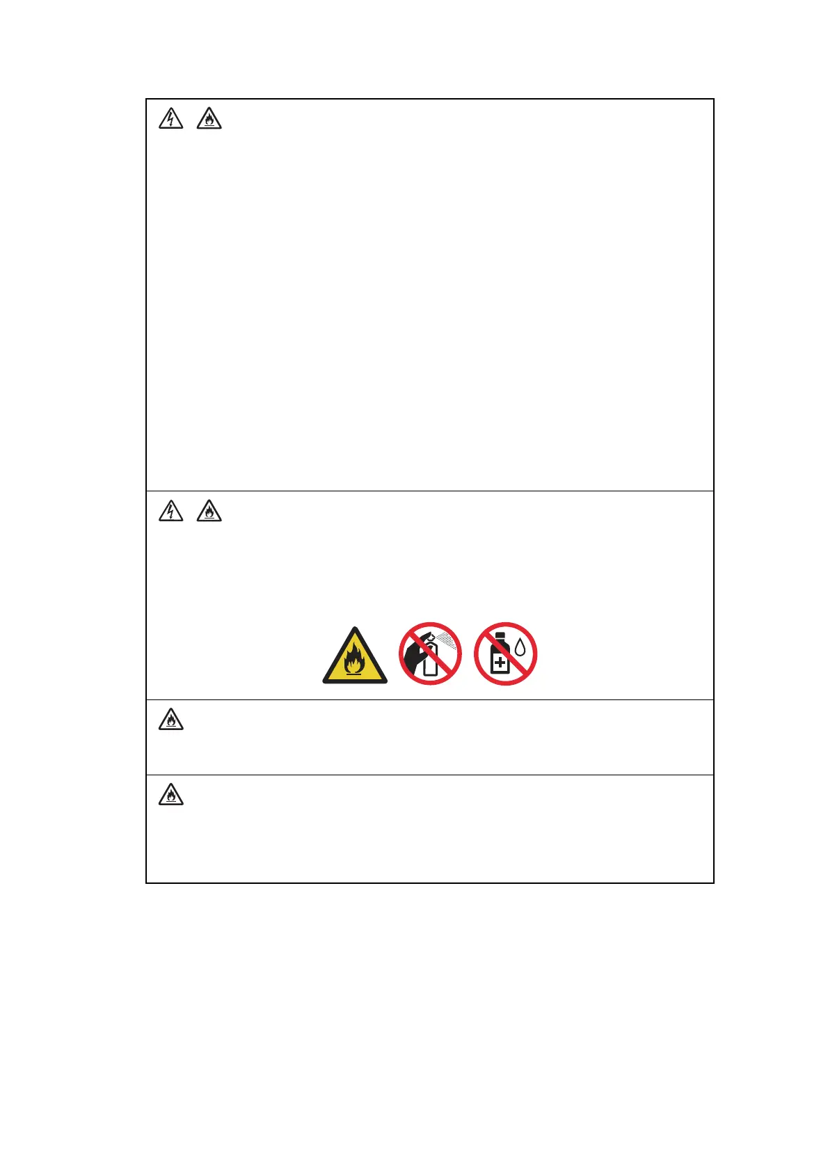 • DO NOT use flammable substances, any type of spray, or an organic solvent/liquid