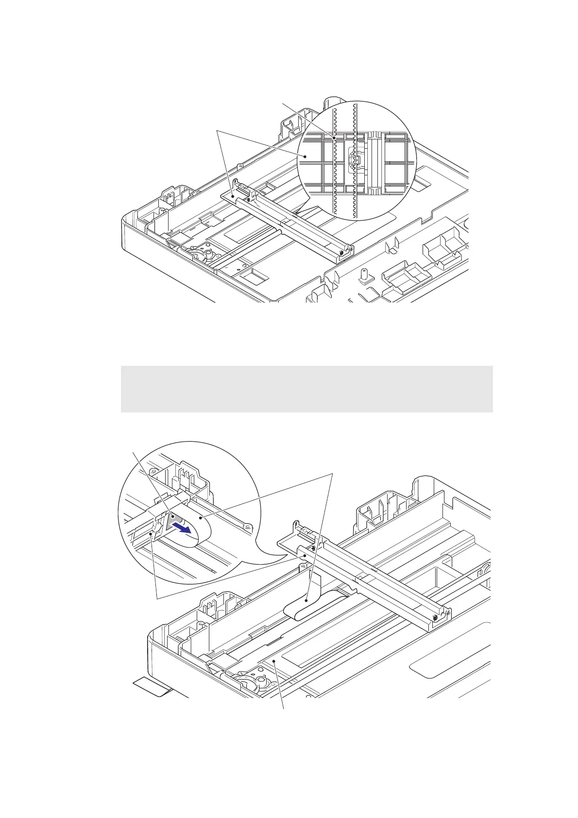 (7) Remove the first side CIS flat cable attached on the back of the CIS carriage from the