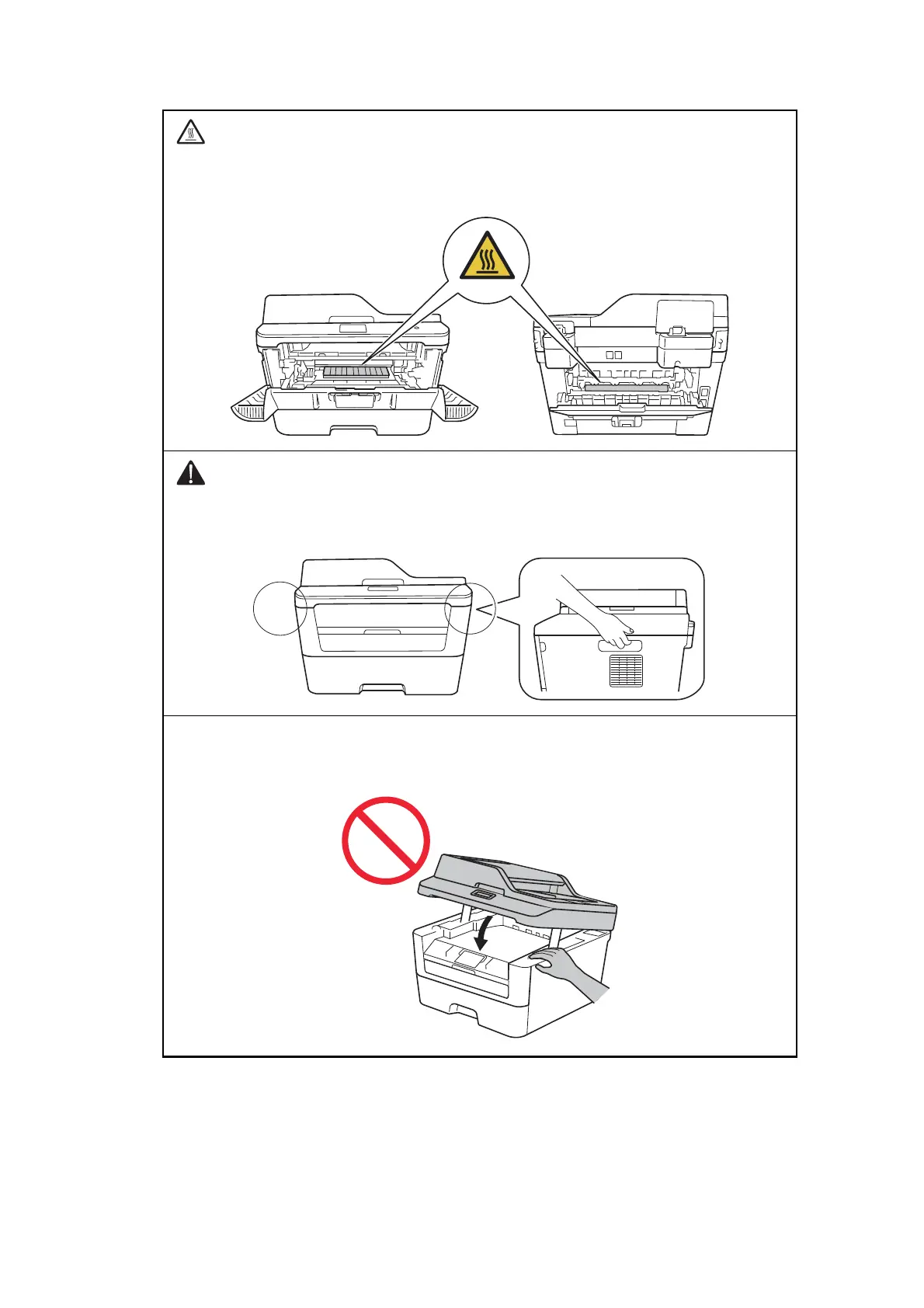 care when placing your hand in the areas shown in the illustrations, and DO NOT close