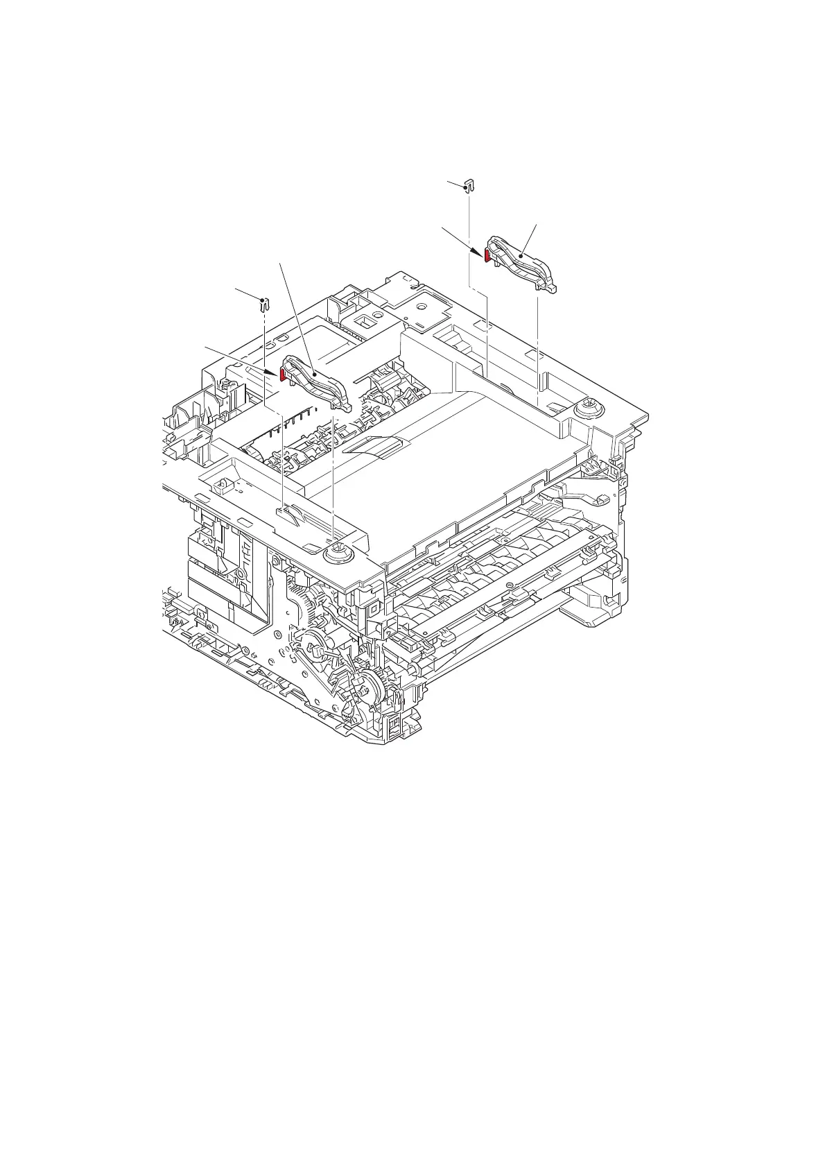 (1) Remove the lock claw. Release the hook to remove the pull arm guide. (2 locations)
