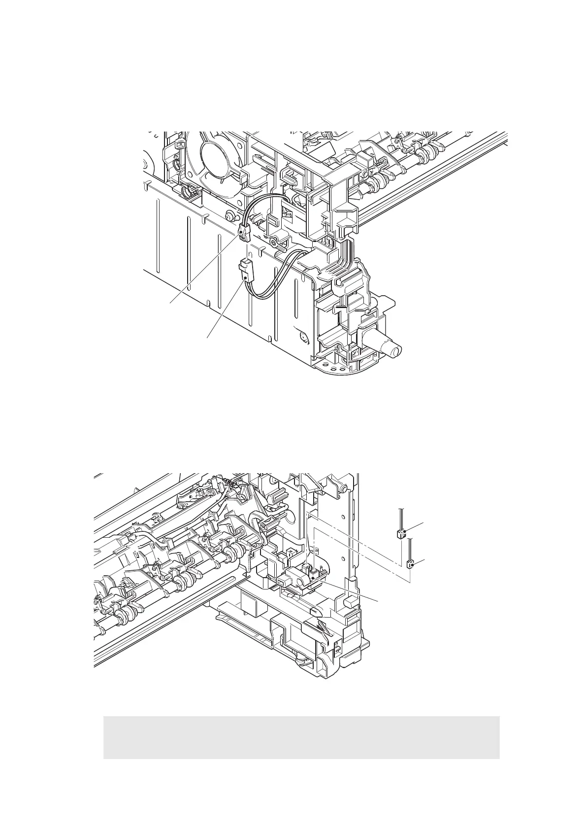 (1) Release the fuser unit heater harness from the securing fixtures, and disconnect it from