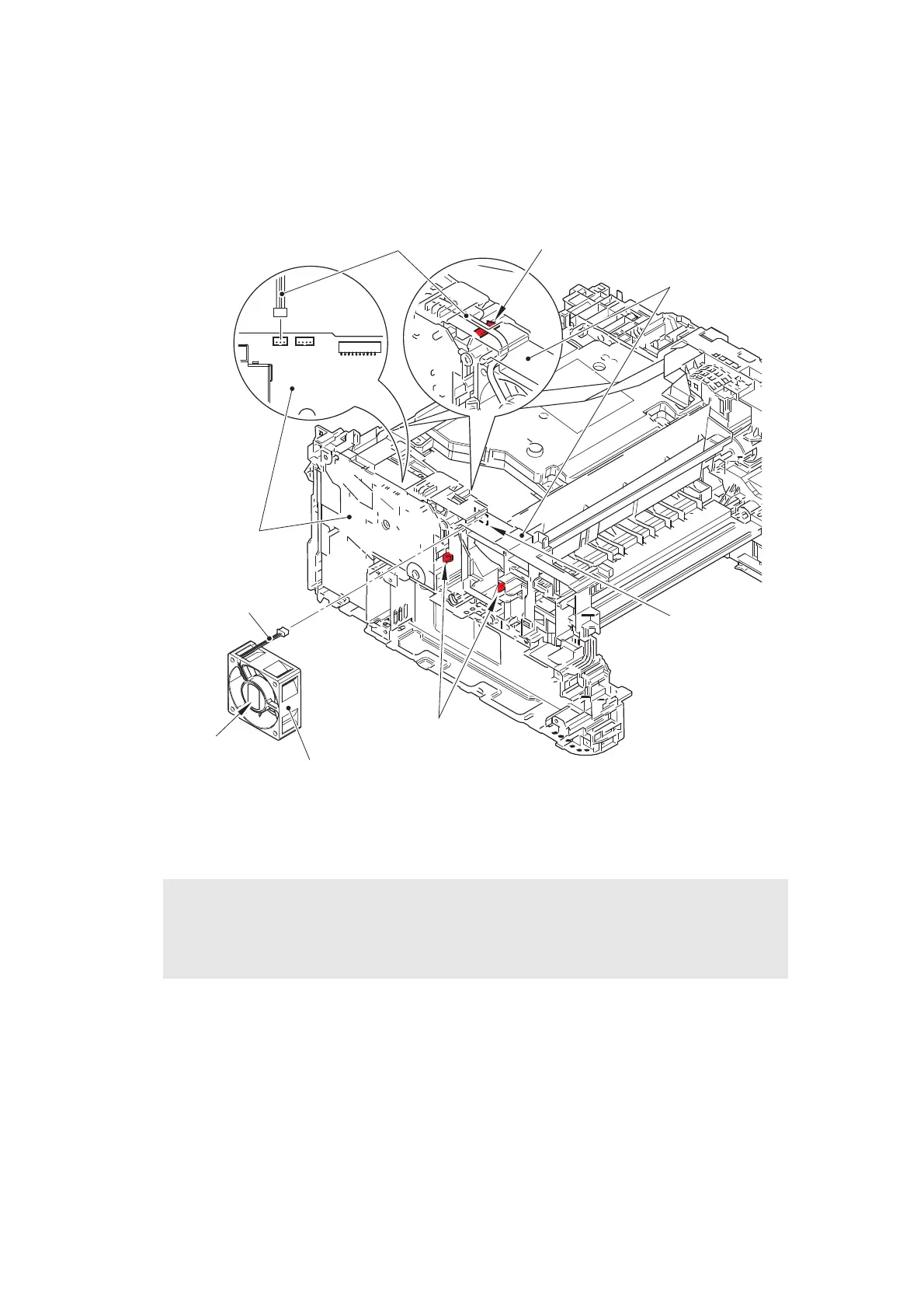 (1) Disconnect the fan harness from the high-voltage power supply PCB ASSY, and release