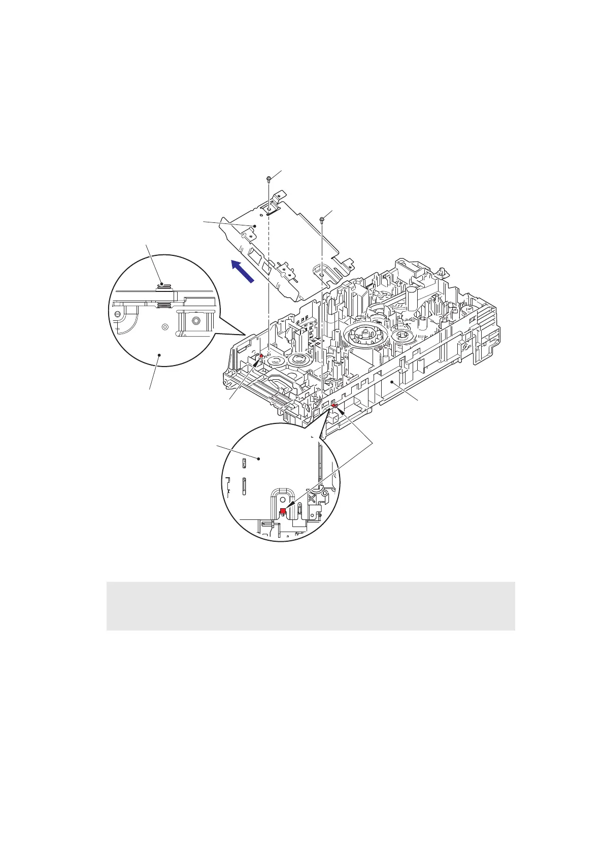 • When assembling the main shield plate, check that the main PCB ground spring is not