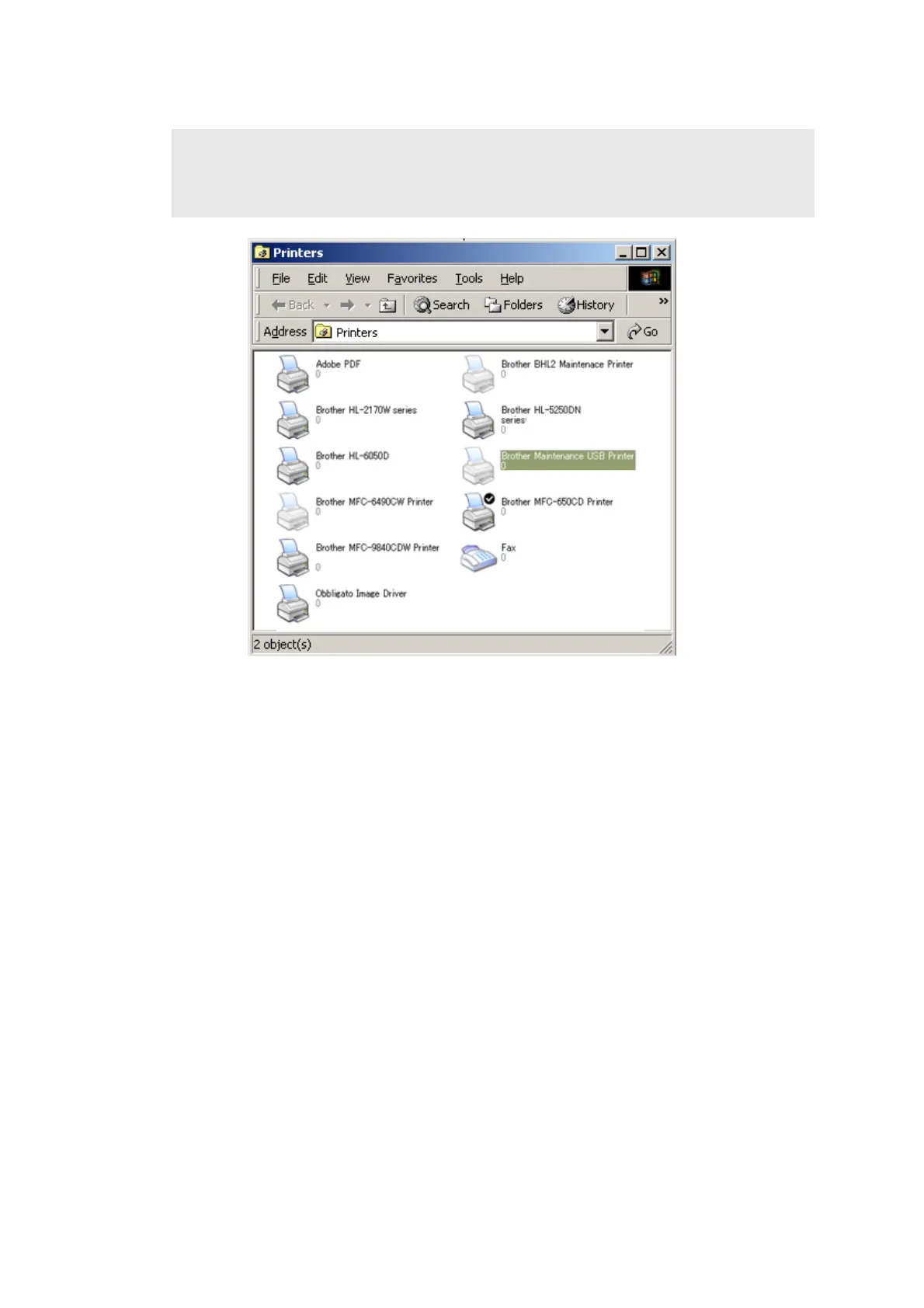 [Printers] to select the Printers window. Then, check that the Brother Maintenance USB